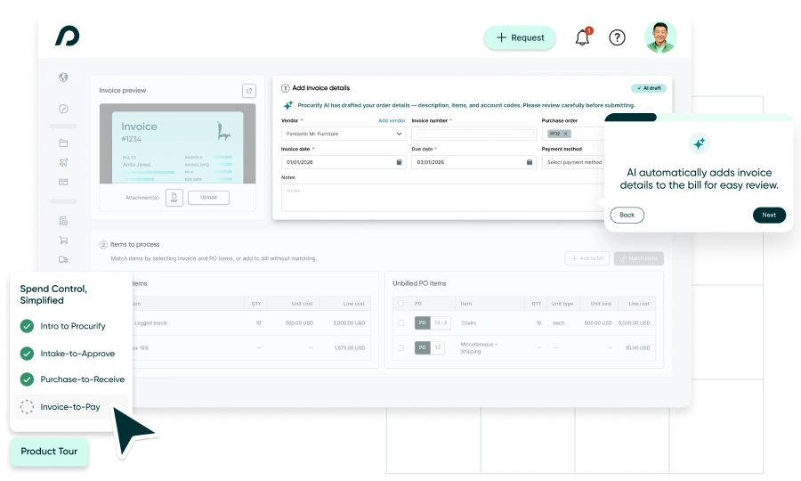 Discover how Procurify’s AI-powered platform automates workflows, provides full spend visibility, and drives measurable ROI across the entire intake-to-pay process.